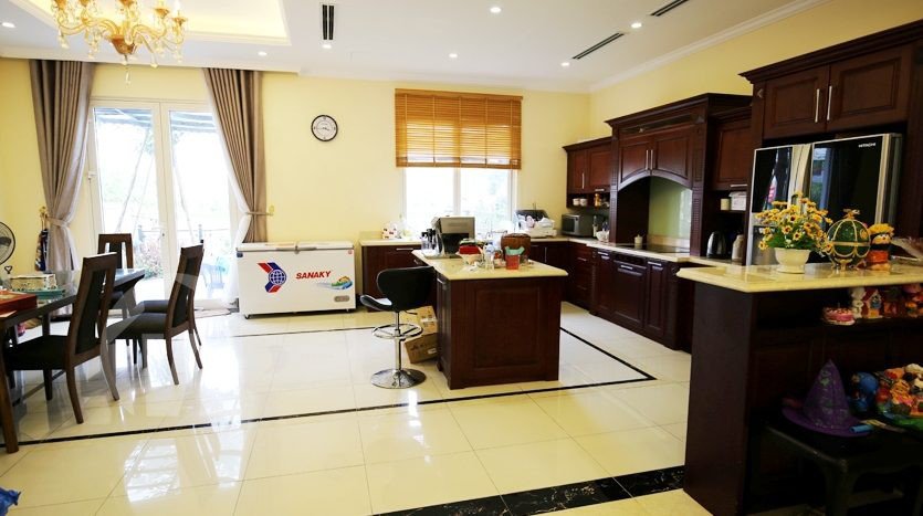 This is one of the most luxury and huge villa for rent in Hanoi City. The villa is extraordinary large with the total area of 125 sqm x 3,5 floors and the rental price of 4000$/month, this is undoubtedly and ideal villa for your family . It included four bedrooms, four bathrooms, one kitchen next to the living room, a big front yard. Moreover, the main color is white from the furniture and walls that is why the apartment looks so dazzling and gorgeous.